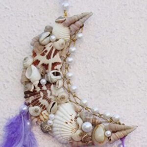 Unknown Yuvicreations, Moon Shape, Sea Shell Dream Catcher, Fine Quality Feathers. Lavender(Pack Of 1)