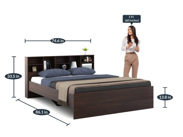 Brand ValueWud Dimensions(In Inches) H 34.4 X W 73.2 X D 87, Mattress Size :78 L x 72 W Inch (Mattress Not Included) Weight 103 KG Colour Walnut Warranty 24 Months' Warranty Assembly Carpenter Assembly Primary Material Engineered Wood Room Type Bedroom Storage No Storage Seating Height 12.2 Inches Recommended Mattress Size 78 L x 72 W Inch Product Rating 4.5 Dimensions (In Centimeters) H 87.37 X W 185.92 X D 220.98₹17,999.00 -