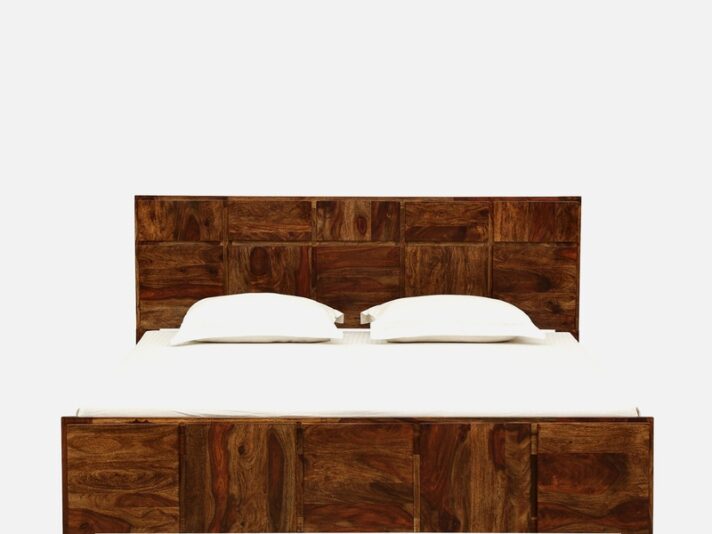 Comet King Size Upholstered Bed With Box Storage In Exotic Teak Finish