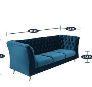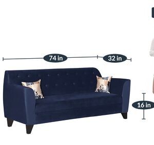 Brand CasaCraft Dimensions(In Inches) H 29 x W 85 x D 36 Weight 60 KG Colour Blue Warranty 36 Months' Warranty Assembly No Assembly Required Primary Material Velvet Fabric Room Type Living Room Seating Height 17.5 Product Rating 4.5 Dimensions (In Centimeters) H 86.36 x W 215.9 x D 91.44₹60,000.00