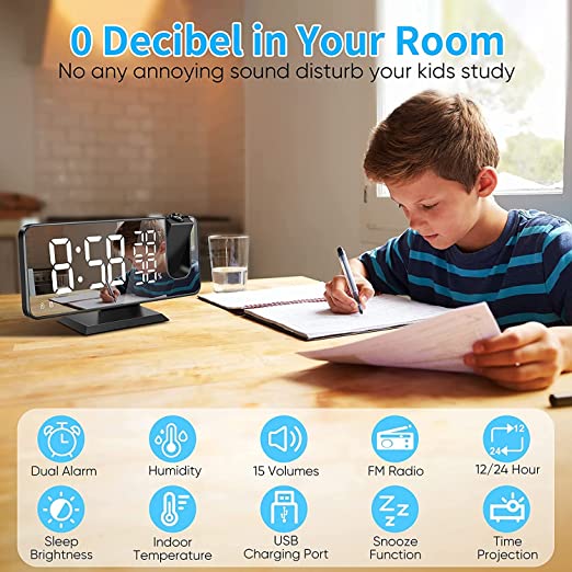 DROZIP Projection Alarm Clock, Desk Clock Table Clock Multifunctional Digital Alarm Clock Thermometer Hygrometer Led Clock for Home Bedroom, Study and Office