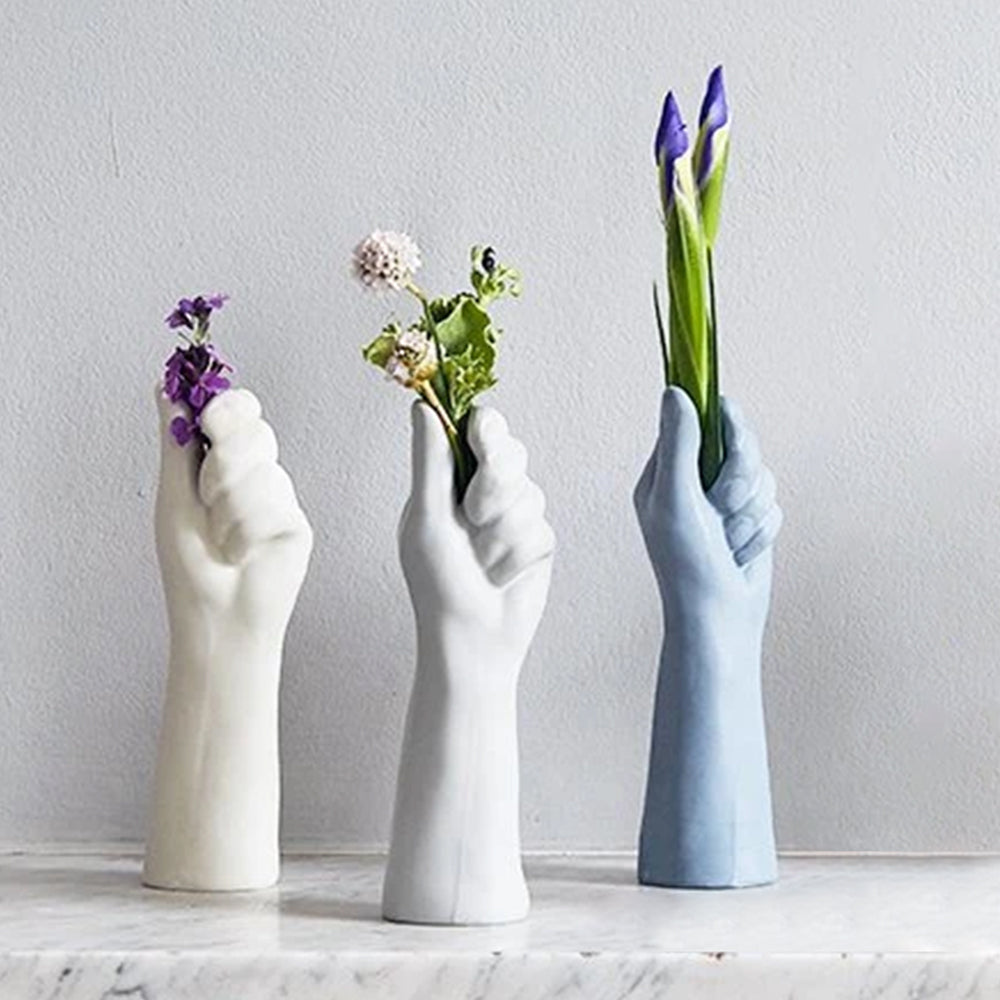This is a unique design of flower vase that will make it look amazing even without flowers in it.nIt is available in 3 colors- white, blue, and grey.nThis statement vase can be the focal point for the interior design of the rest of your house.nThe design resembles a hand offering flowers to a beloved. It can be ideal for gifting purposes.nThe Artment is one of the leading home decor brands, that creates unique designs which are eye-catching and utilitarian in nature and a worthy investment for your home.nHand Me The Flowers is a gorgeous addition to your home decor. It can be displayed in the show cabinets or set on the foyer table. This flower vase’s unique design is going to add an x-factor to your decor.n