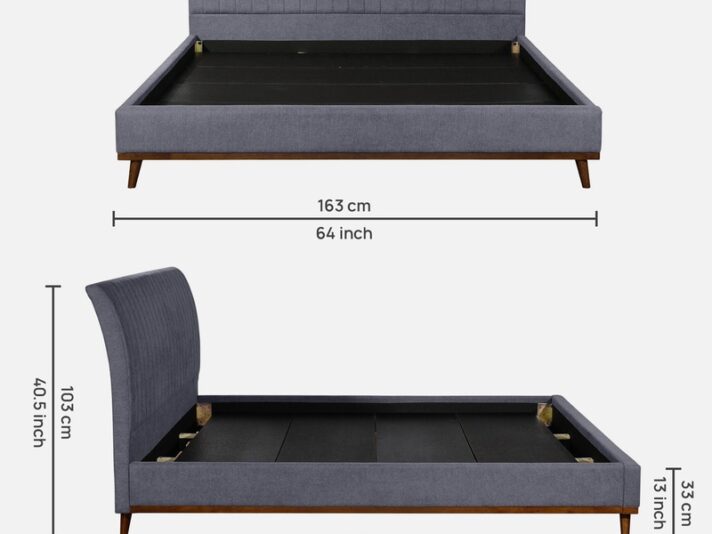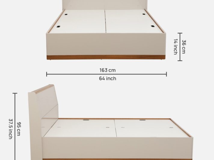 Kosmo Cooper Queen Size Upholstered Bed With Box Storage in Natural Teak Finish