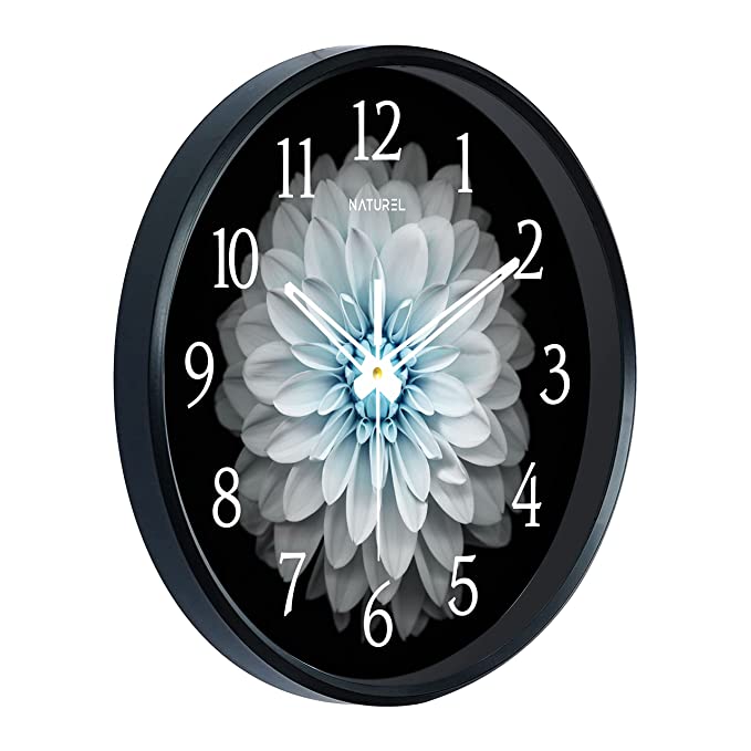 Naturel Plastic Big Size Designer Analogue Round Wall Clock for Home (White Flower , 10 x 10 Inch (1103)