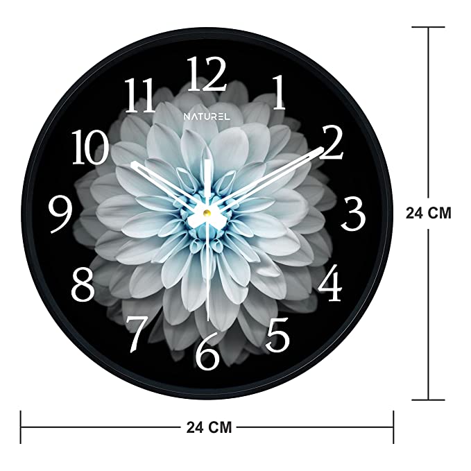 nBrand NATURELnColour WhitenDisplay Type AnalognStyle ModernnProduct Dimensions 25.4W x 25.4H CentimetersnShape RoundnMaterial PlasticnFrame Material Plastic, GlassnAre Batteries Included NonMounting Type Wall Mount