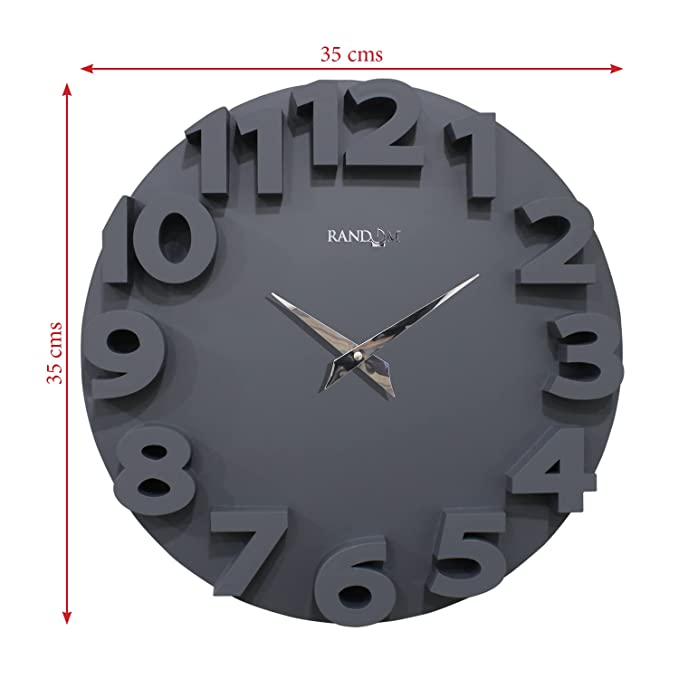 Random Wall Clock for Living Room, Bedroom, Home, Office, Kitchen| Wall Clocks for Home | Big Size Wall Clock with Glass|Designer Wall Clock for Home Decor |Quartz Movement|14- inch|RC-63338 |Grey