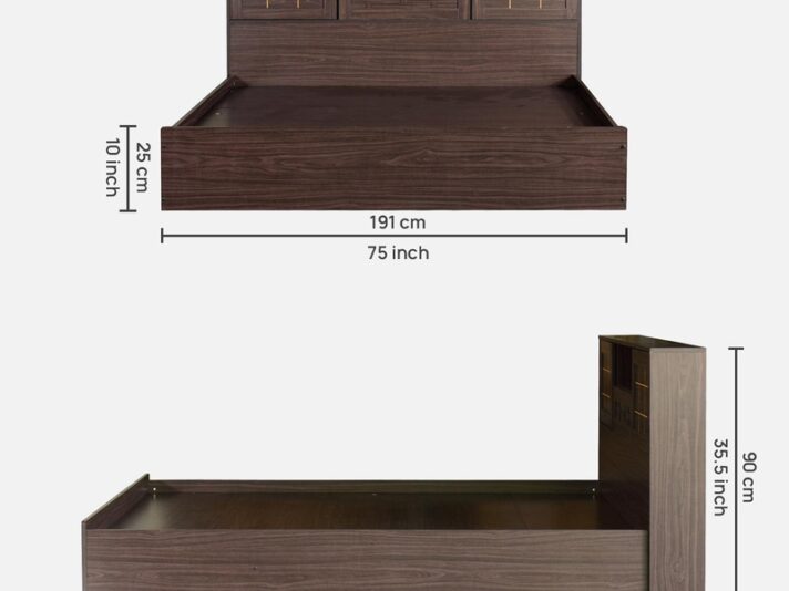 Brand Mintwud Dimensions(In Inches) H 35.5 X W 75 X D 87; Mattress Size :78 L x 72 W Inch (Mattress Not Included) Weight 137 KG Colour Walnut Warranty 12 Months' Warranty Assembly Carpenter Assembly Primary Material Engineered Wood Room Type Bedroom Storage Box Storage Seating Height 10 Inches Recommended Mattress Size 78 L x 72 W Inch Product Rating 4 Dimensions (In Centimeters) H 90.17 W 190.5 D 220.98₹118,249.00 -