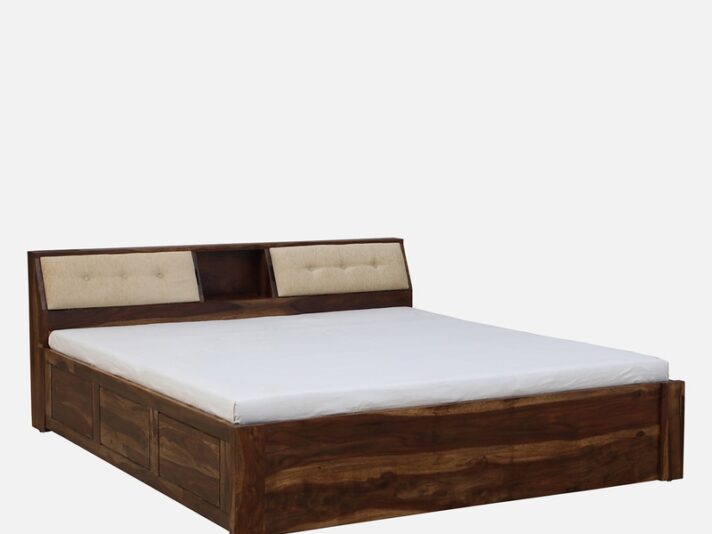 Ursula Solid Wood King Size Bed with Headboard & Box Storage in Rustic Teak Finish